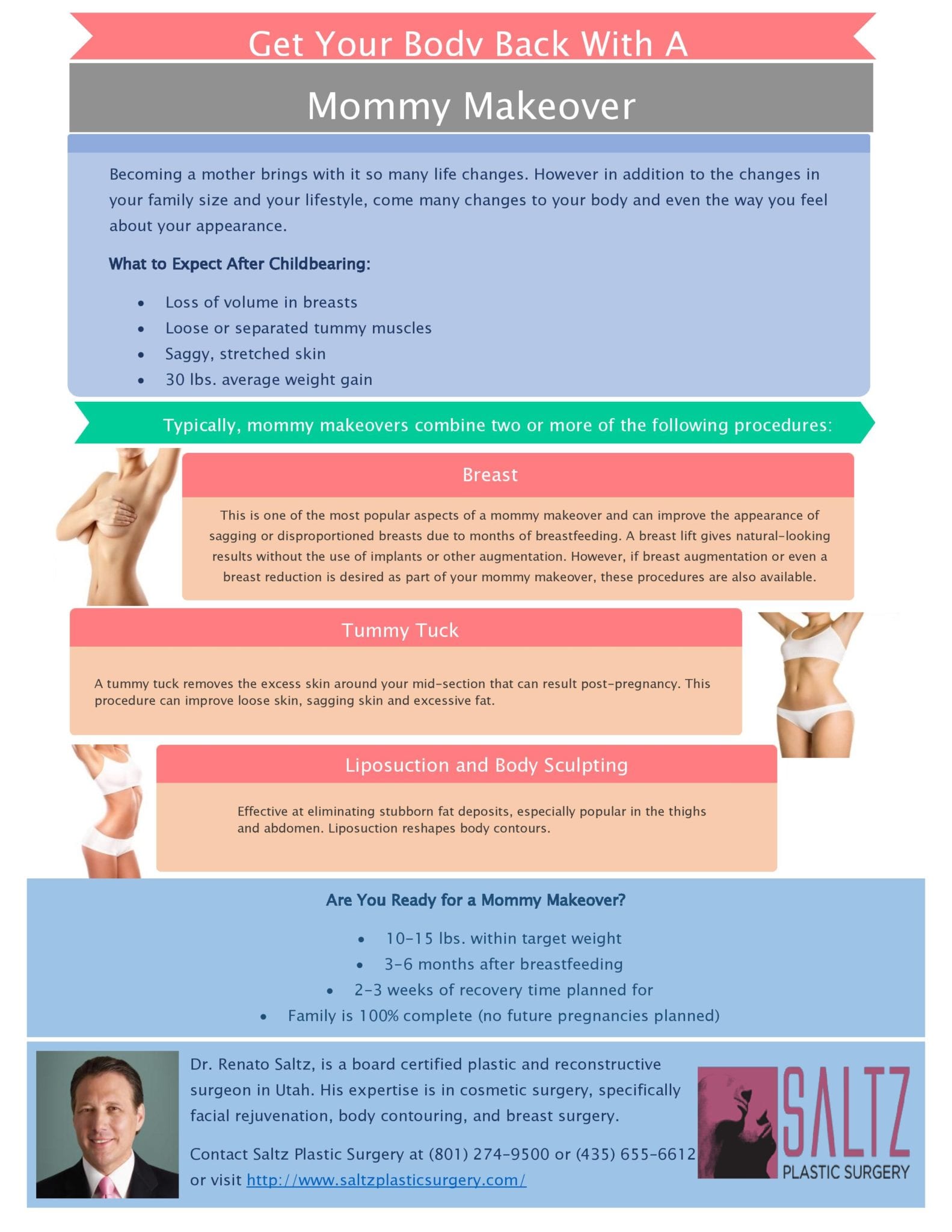 Ready to get your body back after baby? The Mommy Makeover is a great way to take care of many or all of your problem areas all at once.